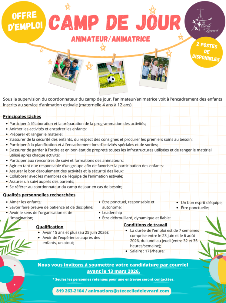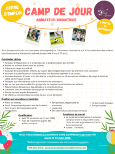 Pour faire partie de notre équipe dynamique de camp jour 2026 !
